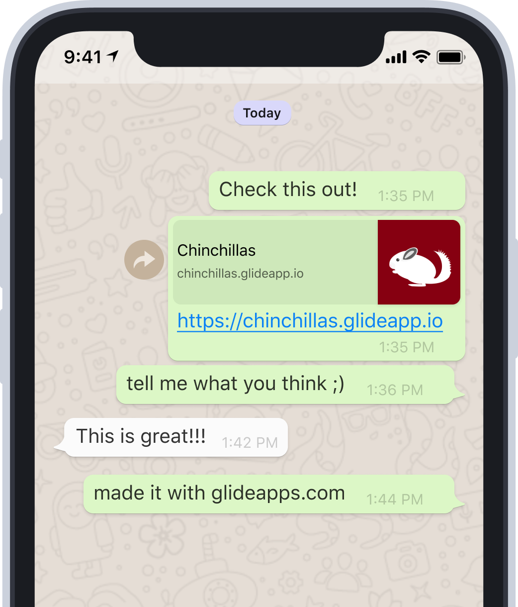 Copy, paste, send. That’s how easy it is to share your app with anyone, anywhere. Voilá!