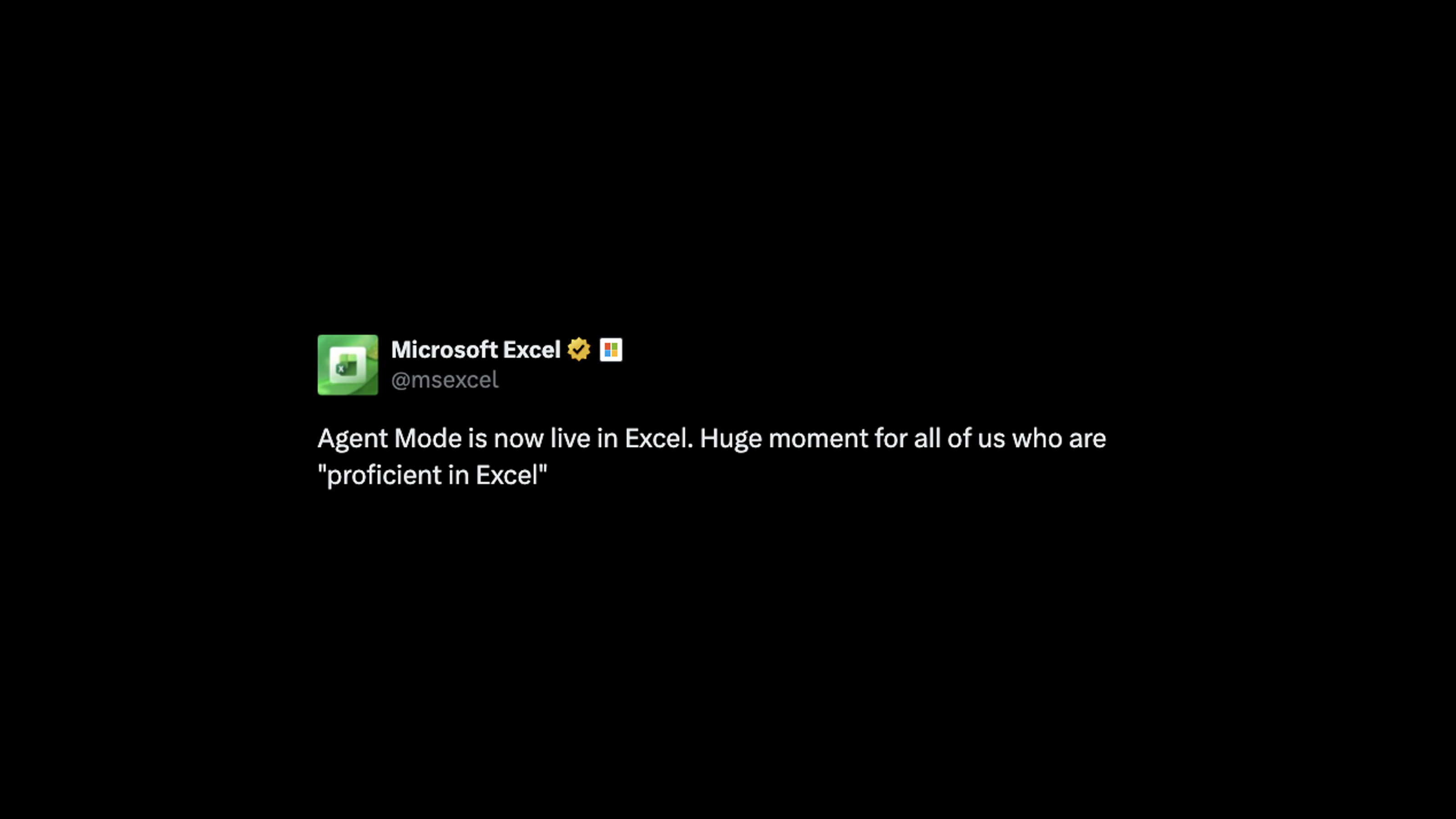 January 27, 2026: Agent Mode became generally available on Excel for Windows and Mac (today's announcement).